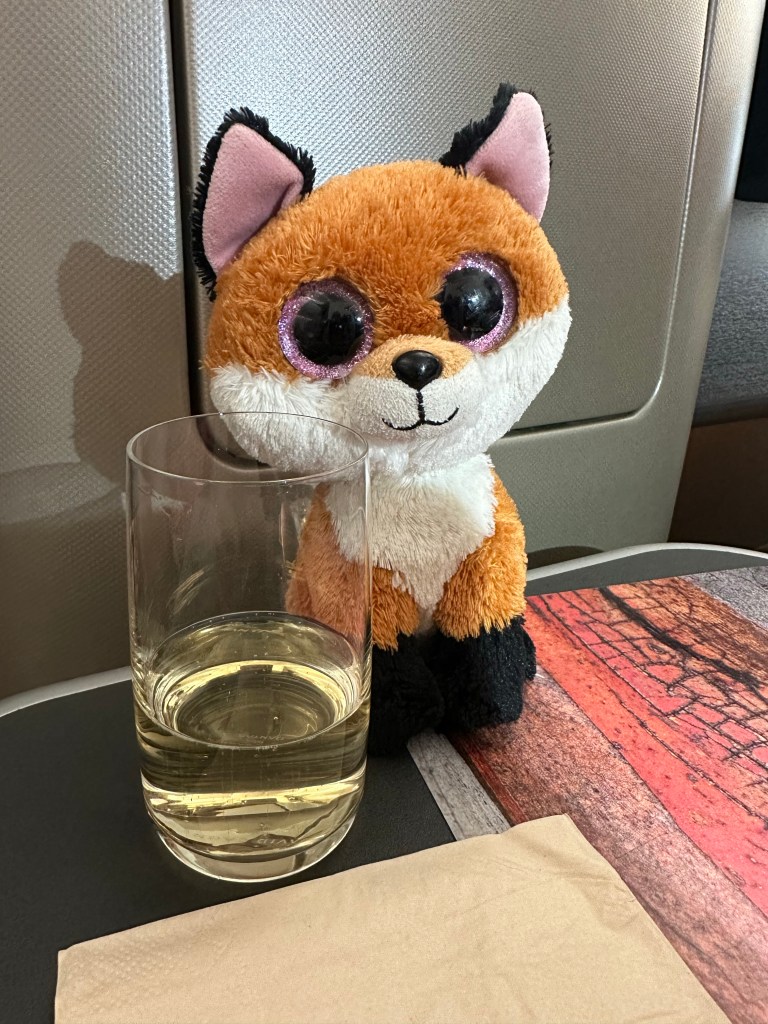 Despite taking off 45 minutes late, my humans only got through one glass of Champagne before takeoff. I fear they are getting old.