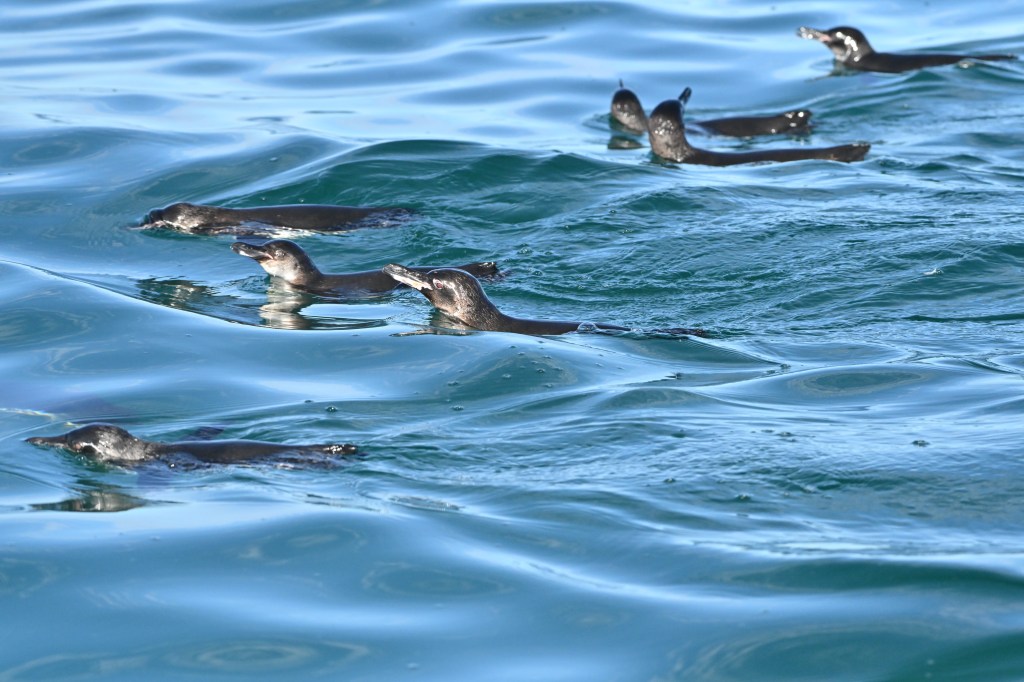 A raft of Galapagos penguins pretending to fish while planning the overthrow of the Crab Empire.