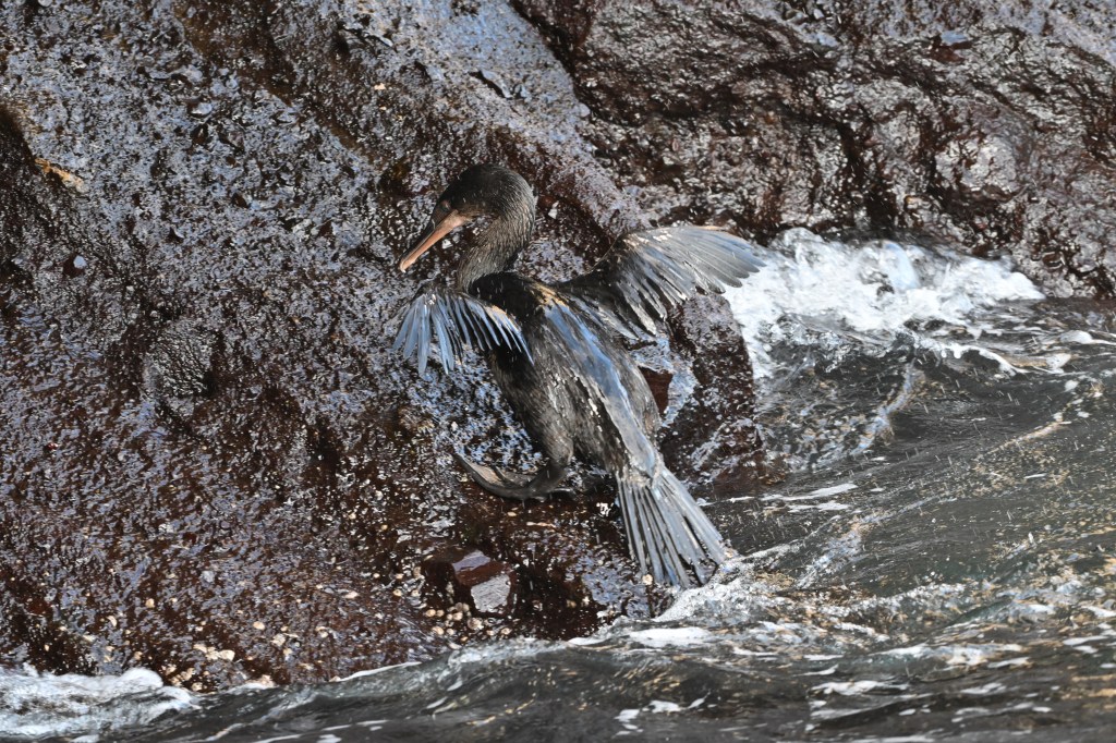 Like all water birds, flightless cormorants have preen glands, but these chaps do not use them to waterproof their feathers, because wet feathers allow them to dive deeper when hunting fish. The downside is weighing a metric shit-tonne when getting out of the water.