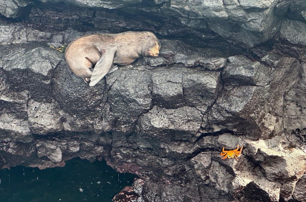 The little-known cliff-dwelling Galapagos fur seal, with constitutionally mandated Sally Lightfoot.